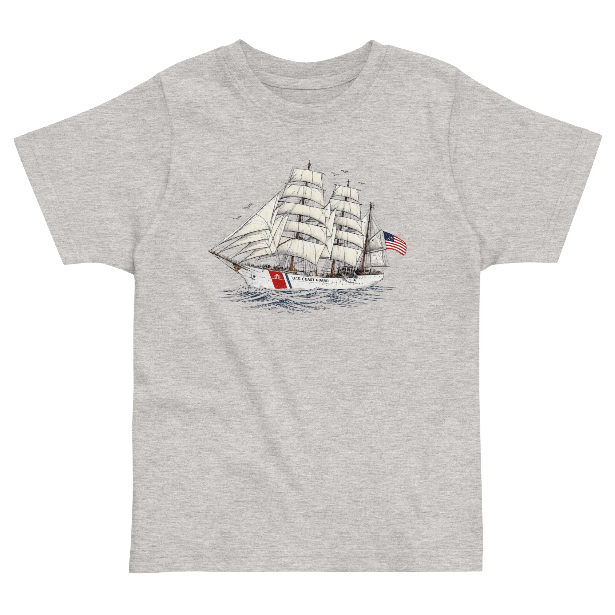 Inspired by the iconic Coast Guard tall ship, this hand-drawn design captures the beauty of a vessel in motion — strong, steady, and built for adventure. Set in classic red, white, and blue, it brings a timeless, all-American feel to a piece made for everyday exploring.
